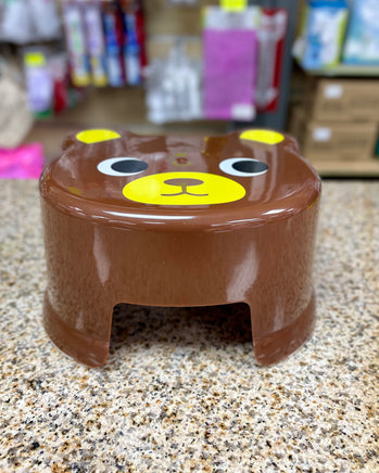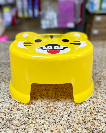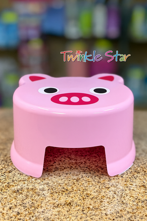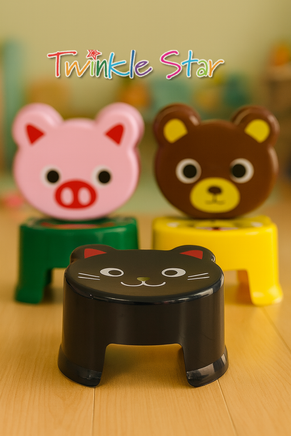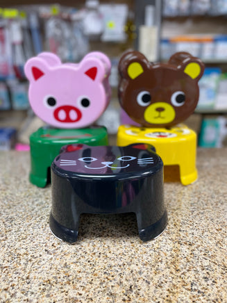 Plastic stool with animal-themed seat designs: