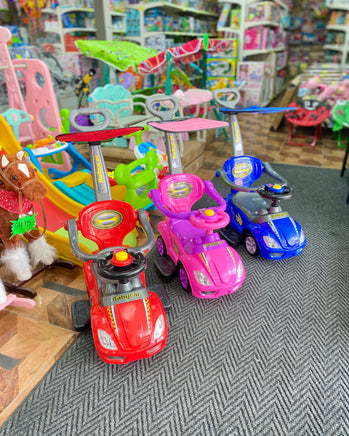 Featuring a sun canopy, this ride-on push car offers a shade for the outdoor cruise. The canopy is dismountable.