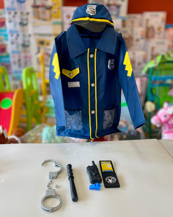 Package Includes: You will receive 6 pieces police officer role play costume toys, this police officer costume set includes a kids police hat, a police jacket, walkie-talkie with sound, whistle, badge and handcuffs with keys.