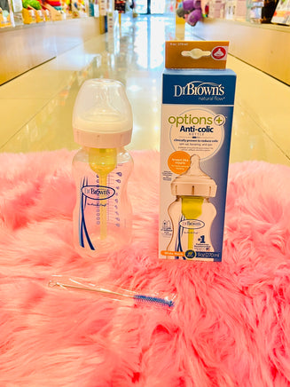 Includes one 9 oz wide neck bottle, 1 level 1 silicone nipple and one cleaning brush