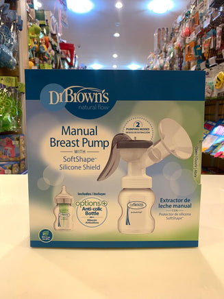 Dr. Brown’s™ Manual Breast Pump with SoftShape™ Silicone Shield is your quiet, powerful pumping companion.Includes Dr. Brown’s Anti-Colic Options+ 5 oz/150mL Wide-Neck Baby Bottle with breast-like Level 1 Slow Flow Nipple and storage/travel cap