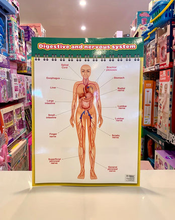 The illustration of human Digestive and nervous system for kids.