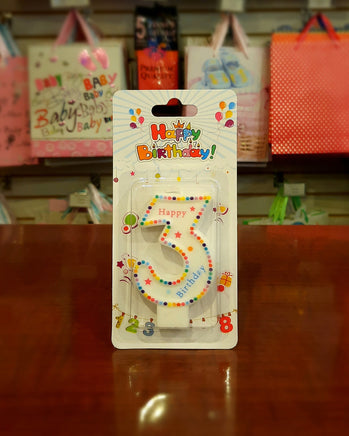 Celebrate your special day with the Polka Dot #3 Candle! This vibrant cake decoration is shaped like the number 3 and features festive polka dots. The wax candle is 1.5" x 3" and is perfect for event planners, caterers, and home hostesses alike. Coordinate with other polka dot party supplies for a complete look. Make your birthday party decorations and accessories even sweeter with the Polka Dot #3 Candle from Creative Converting.