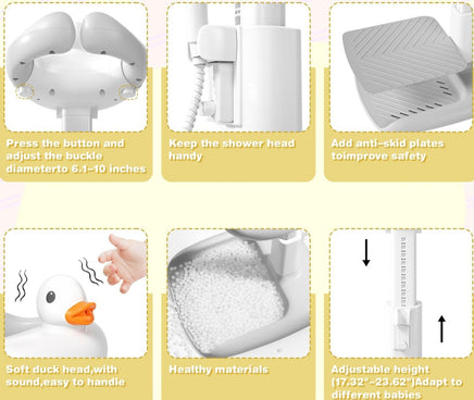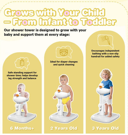 The Hug Bath Tower Support is a great helper for mother to take a shower or change a diaper for baby/toddler between 6-18 month. Height and width are easily adjustable to fit baby's body up to 33lb or 35in maximum.