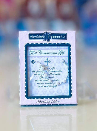 This beautiful sterling silver and freshwater pearl rosary bracelet features a classic silver cross presented with a sweet little poem for her First Communion. Perfect Gift for First Communion! Bracelet measures 6 - 6.5"