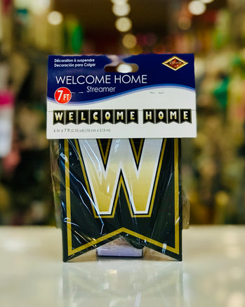 The Welcome Home Streamer by Beistle is the perfect decoration for any special occasion. Measuring 6" x 7', this banner is made of durable and lightweight material. Assembly is required and each package contains 1 banner. It is a great selection for any general occasion, from birthday parties to anniversaries. The Welcome Home Streamer is designed to be hung in any doorway or window and will create a welcoming atmosphere for your guests. With its vibrant colors, this banner is sure to be the perfect addition to any celebration.