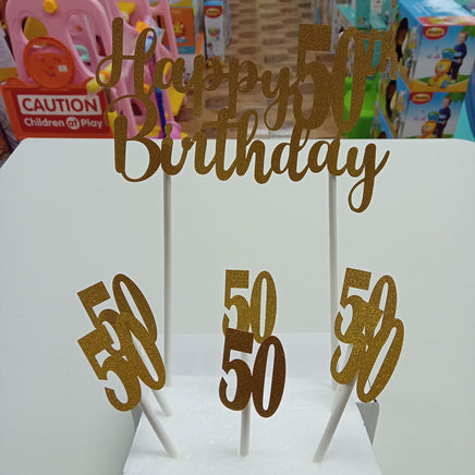 Welcome your loved one to their golden anniversary with the Happy 50th Birthday Cake Topper from Beistle! This 6" x 8.25" item is perfect for adorning any cake and comes with six 1 inch x 3.5 inch '50' picks for added decoration