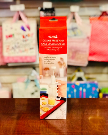 12 plastic disks in a wide assortment of shapes & 6 piece Funnel Icing Tips & 1 Gun