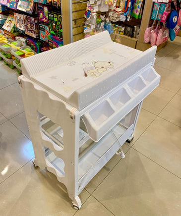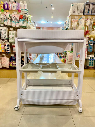 Change time just got a whole lot easier with the Babywise Change table with Bath! Mounted on a sturdy frame you can bathe, drain, change and powder your way to changing heaven! With utility holders and shelves for storage you wont need to take a step away from your baby during change time. This all in one utility center is all you will need!