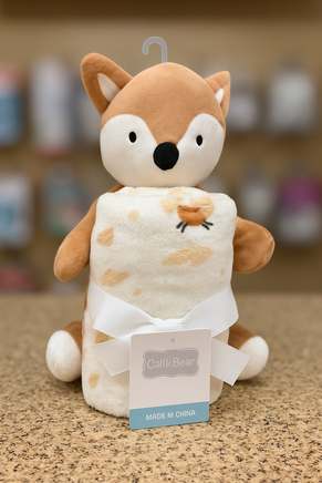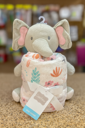 This adorable gift combo features a cuddly plush bear paired with its very own snuggly matching blanket! Perfect for welcoming tiny newcomers into the world. The super-soft plush material makes naptime extra cozy.