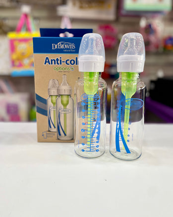 Your options have never been better with Dr. Brown's Natural Flow Anti-Colic Options+ Narrow Glass Baby Bottle. The anti-colic internal vent system is clinically proven to reduce colic. Dr. Brown's bottles provide a more comfortable feeding experience for baby by decreasing spit-up, burping, and gas. The vacuum-free feeding is closest to breastfeeding and Dr. Brown's silicone nipples provide a consistent flow so baby can feed at their own pace. The breast-like nipple shape encourages a proper latch for a more natural bottle-feeding experience and eases the transition from breast to bottle and back again. Dr. Brown's vent system is proven to help preserve bottle milk nutrients and aids in digestion for a better night's sleep. The silicone nipple, together with the internal vent system, offer a reliable and trusted bottle-feeding experience that makes Dr. Brown's the #1 Pediatrician Recommended Baby Bottle in the U.S.* Dr. Brown's Glass bottles are heat and thermal shock-resistant, which can withstand hot and cold temperatures, along with gradual temperature changes. Made to grow with baby, our bottle is designed to nourish through all of baby's feeding stages. Safe for use in dishwasher (top rack only), electric and microwave sterilizers or boiling water. BPA-Free.