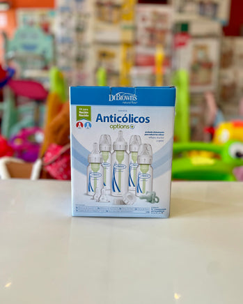 Dr brown's options plus anti-colic blue bottle giftset this attractive blue gift set makes an ideal baby shower gift. the enhanced design of the dr brown’s options+ anti-colic bottle is clinically proven to reduce windy colic due to dr brown’s unique 100% vacuum-free vent system. dr brown’s options+ bottles offer an easy and comfortable way to feed your little-one, adapting to their needs as they grow. with the unique design, this bottle can be used with or without the removable internal vent system, transforming it into a teat-vented bottle for more convenience. use dr brown’s options + bottles from birth – don’t wait until your baby develops colic! the unique internal green vent system continues to create 100% vacuum free feeding, which is clinically proven to help reduce wind related colic. this is what makes dr brown’s the number one choice of uk health professionals for the relief of colicky symptoms. the breast-like teat shape is correctly contoured for a proper latch and a more natural bottle-feeding experience - perfect for switching from breast to bottle and back again! each teat is specially engineered to offer the same consistent natural flow, so you and baby know what to expect in every feed. dr brown’s options+ grows with baby, allowing easy removal of the vent system when baby no longer experiences feeding problems, or you want the convenience of a teat-vented bottle. the teat venting creates a controlled flow, offering babies an easy and convenient way to feed at their own pace. the complete feeding system that grows with baby and helps alleviate the symptoms of windy colic. prevention is better than cure.
