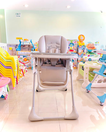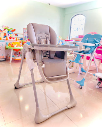 it features seven height positions, meaning you can tailor it to different-sized tables. The backrest can be adjusted to three positions (including the reclining position), and the adjustable footrest enables you to adapt the high chair to your child. The double tray has three adjustment options