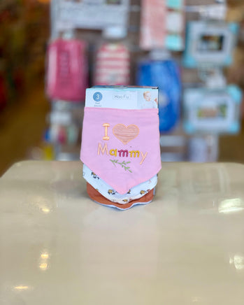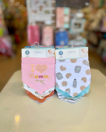 Our new 3 pack bandana bibs are absorbant. Velcro Closure.