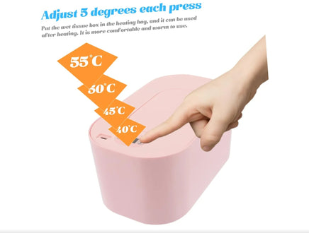 How to use: Open the cover of the wet wipe heater, fix the wet wipe with the durable seal removed with the heating cover elastic band, cover the cover, adjust the temperature, after reaching the set temperature, press the open button, The cover automatically pops up and can be removed for use./