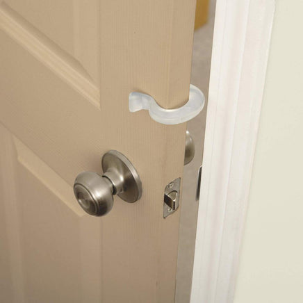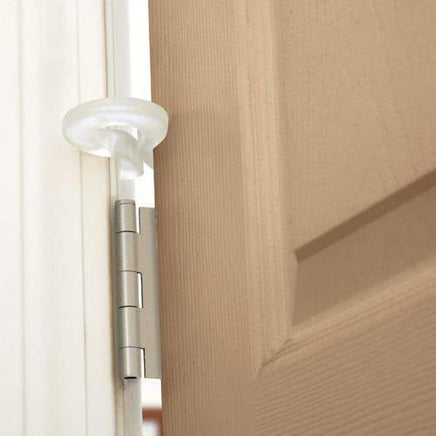 Fits on both the hinge side and the door knob side of the door to prevent finger p"es in both locations