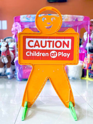 Caution, children at play! This safety sign can be placed in the yard to heighten driver awareness. The sign includes large colorful warnings on both sides. Packed in a colorful "Dump Display" box.