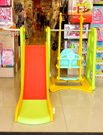 This bright and colorful 3-in-1 playing set offers 3 functions: a smooth slide, a sturdy swing, a basketball hoop and to the which is intended for family and domestic outdoor use. All activity elements are appropriately sized for toddlers. ?Smooth Slide & Safe Swing? The children slide has the gentle slope and easy-to-climb steps offer your babies a smooth slide. The whole slide is connected smoothly without edges for babies‘ tender skin. ?Easy to Assemble?: it is easy to assemble the parts together with a few steps according to the instruction. All necessary hardware is included, no special tools needed. It will provide an endless adventure for your little loved ones! You may use it either indoor or outdoor. Climbing ladder provides a safe and easy challenge for children.