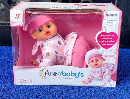 Very cute and would be great for your children/child. My crawling baby can crawl and makes a giggling sound. This battery-operated doll is cute, adorable and easy to love. She is dressed in pajamas with a matching cap.