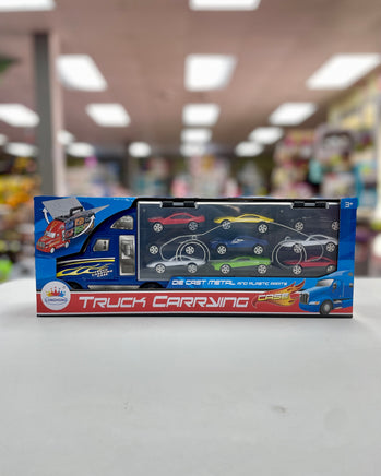 This miniature transporter truck has a realistic design with cool racer logos and stickers.