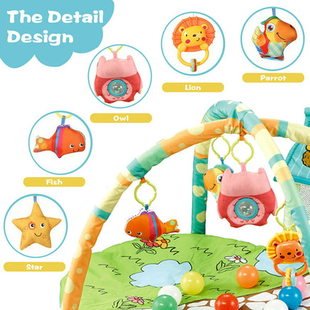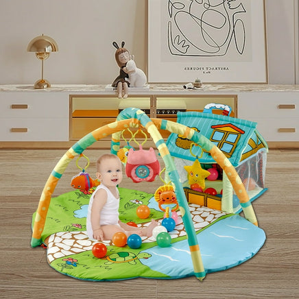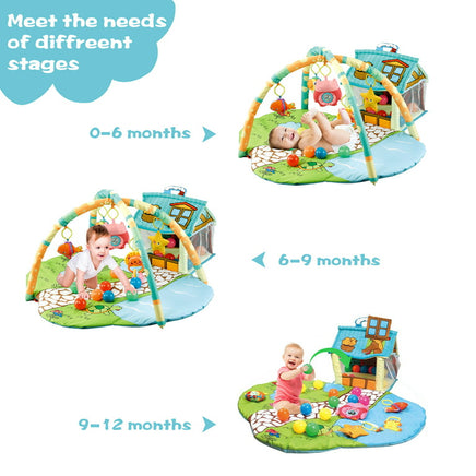 Coordinated Exercise: On the fitness mat there are five hanging toys to train your child's retention and coordination skills.