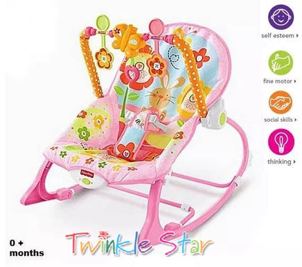 Happy Cute Baby Music Rocking Chair BABY SET is an amazing product for your kids to sit in and play. The bouncer rocker can withstand upto 18 kg of weight. The rocker allows 2 back positions that is either lying or sitting. The product includes abuilt in vibration unit that will help calm your baby. It includes musical toys that will require 2 LR44 batteries to operate. For your baby’s safety, 3 point belt is included that will prevent your baby to fall out of the rocker. The cloth cover on the bouncer rocker is easily removable and washable. You can transform the bouncer rocker into a rocking chair by just removing the stoppers in its leg