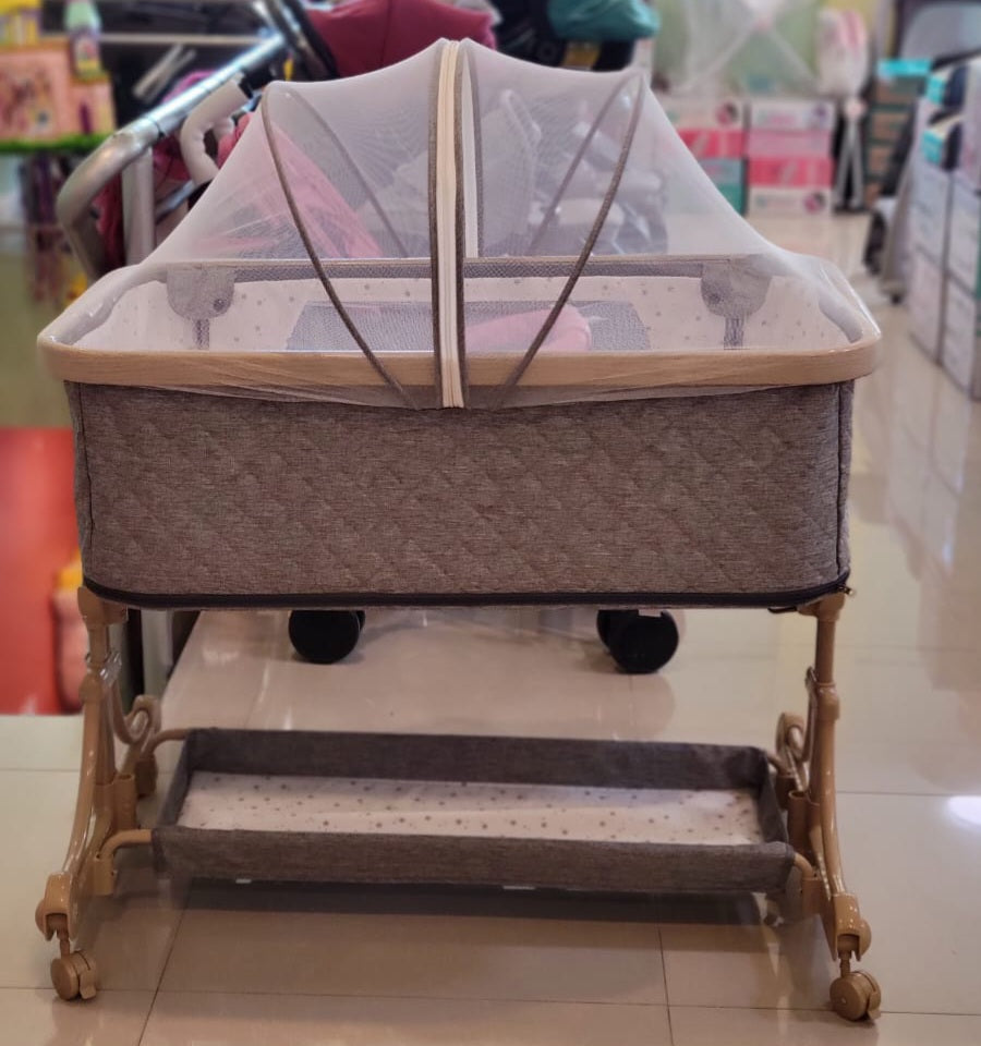 The detachable mosquito net canopy offers extra protection from insects, ensuring your baby sleeps peacefully. Plus, the spacious bottom storage shelf is perfect for keeping essentials like diapers, wipes, and blankets within reach.