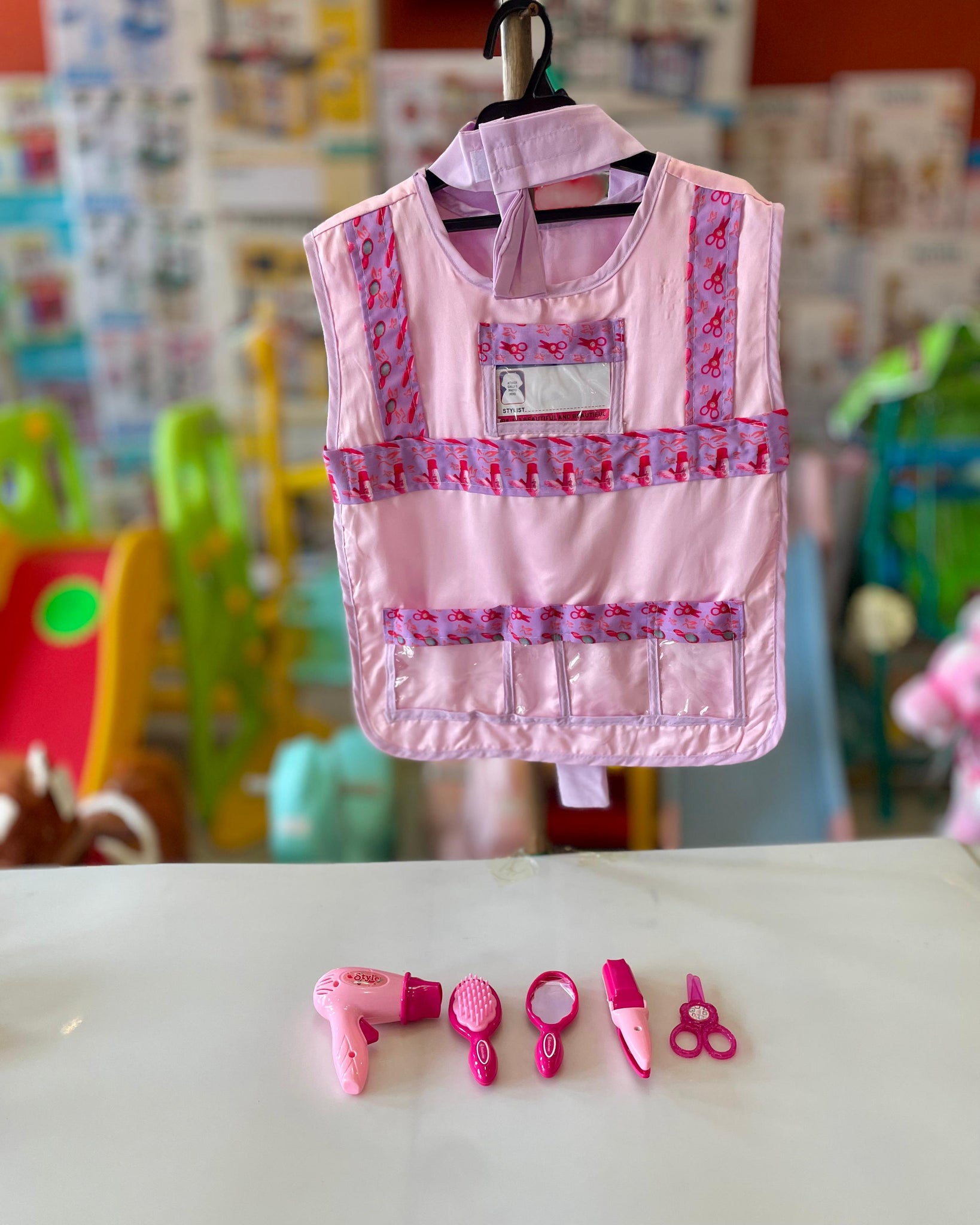 Includes hair dryer, non-cutting scissors, headband and plastic hand mirror.( Pretend Play )