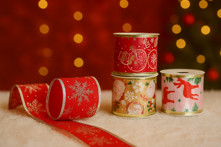 🎀✨ Add the perfect finishing touch to your holiday décor with our 2.5" wired-edge Christmas ribbons!
