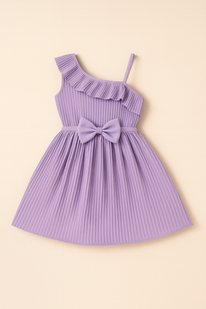 🎁✨ Adorable Girls’ One-Shoulder Pleated Dress ✨🎁