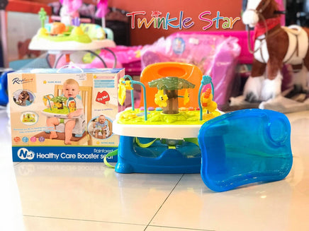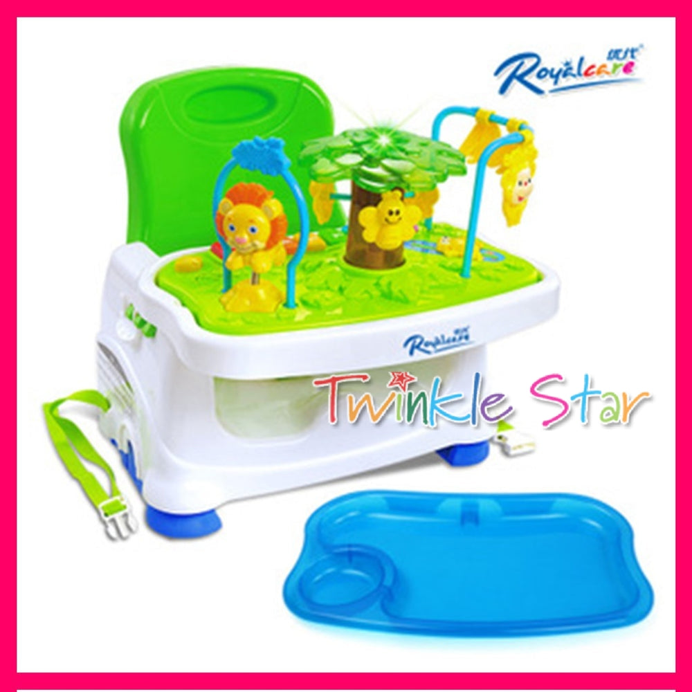 The rainforest booster seat is the perfect product to keep baby or toddler entertained at the table while the parent prepares a meal.