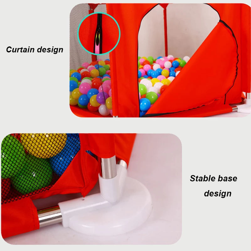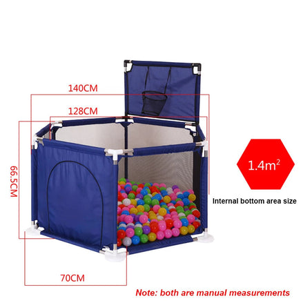 The square play yard fence,50" wide and stands tall at 26", providing much room for kids and their friends to play and parents can put more dolls,balls, rattles into it. Babies will feel so happy when playing in it.Note: When your children play in the ball pit tent, Please put carpet,play mat or other soft things in the bottom of play pen to support it, which will make your children play in the safe environment.