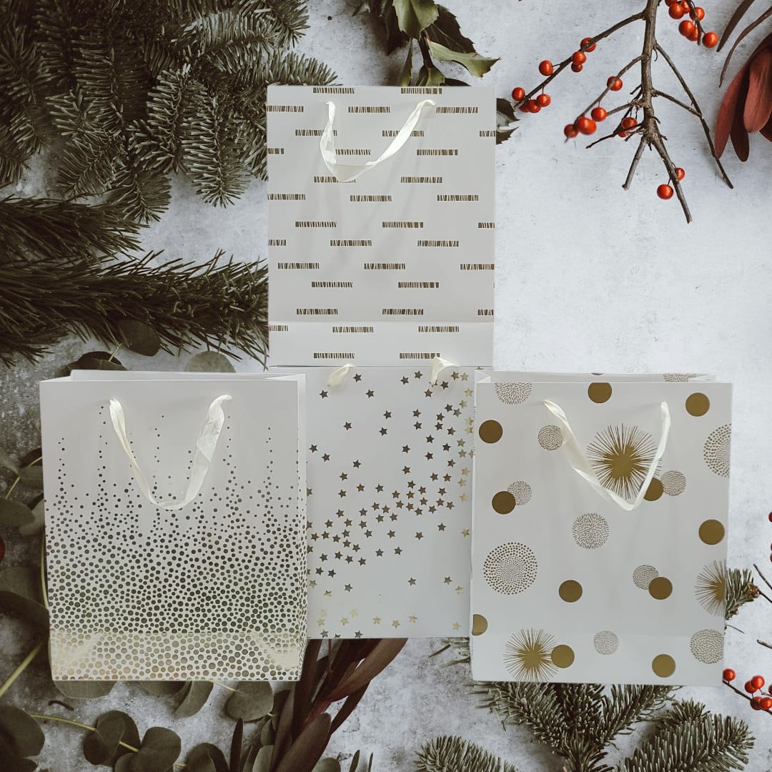 Gift bag White w/gold pattern 12*10"fts32689