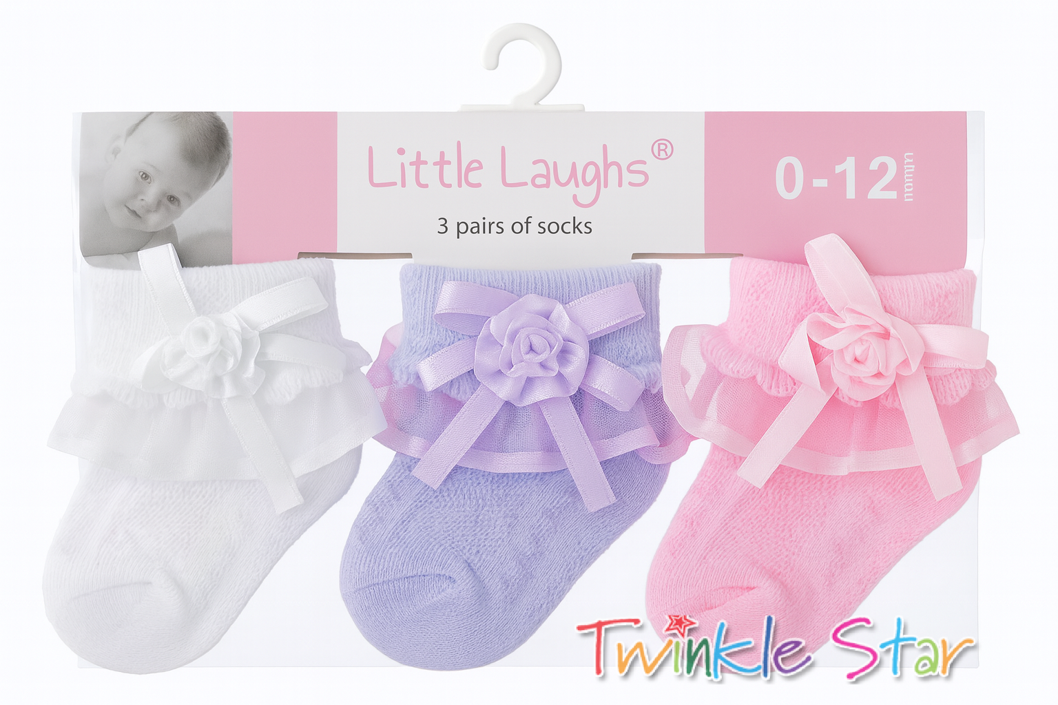 This 3-Pack Baby Girl Socks – Plain with frills lining will be such a good buy for it has different styles/colors that your little one can wear before they put on those adorable shoes.