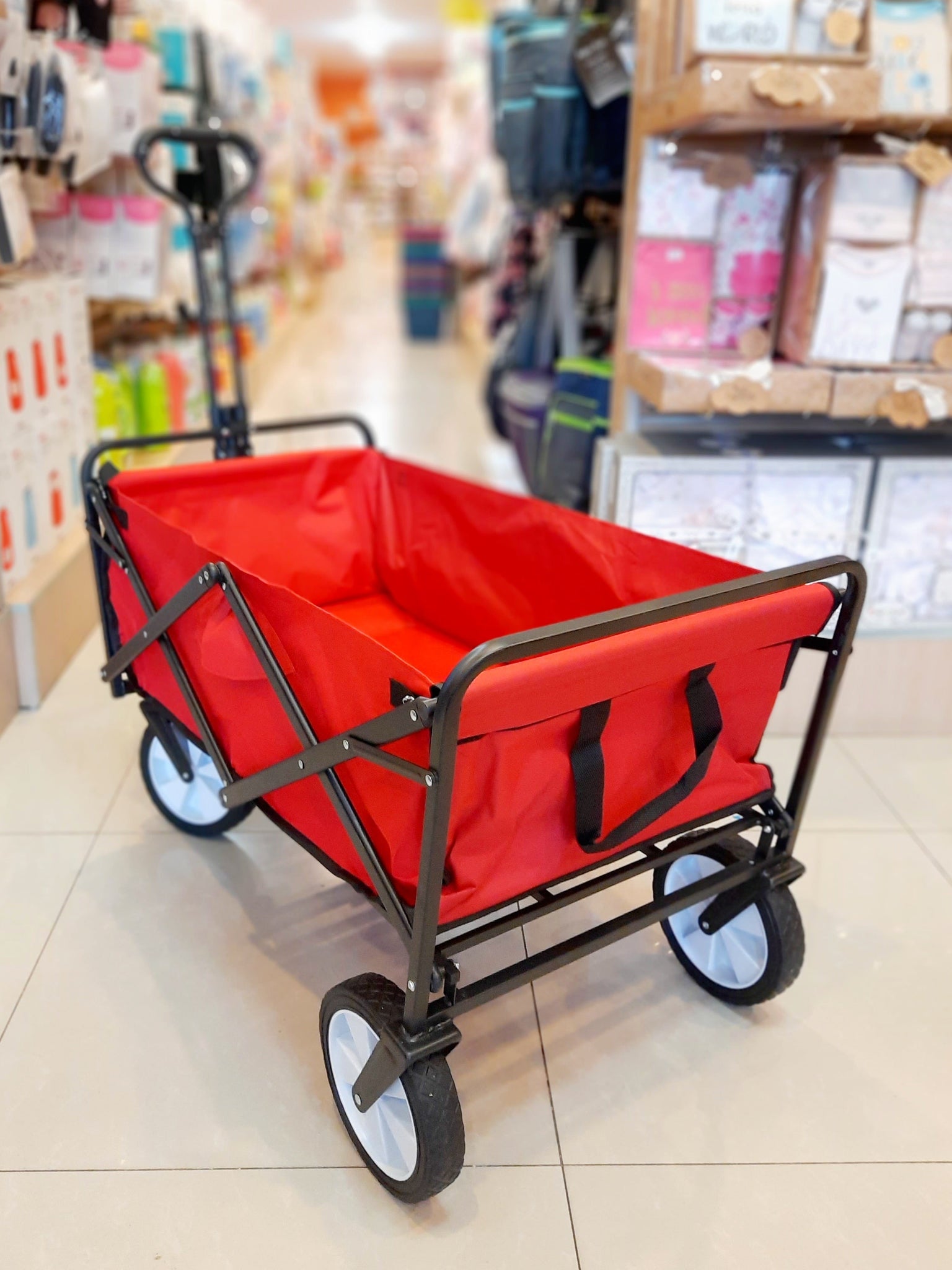 The Folding Wagon occupies a small place to in your garage, storage room or in the trunk of the car when not in use.