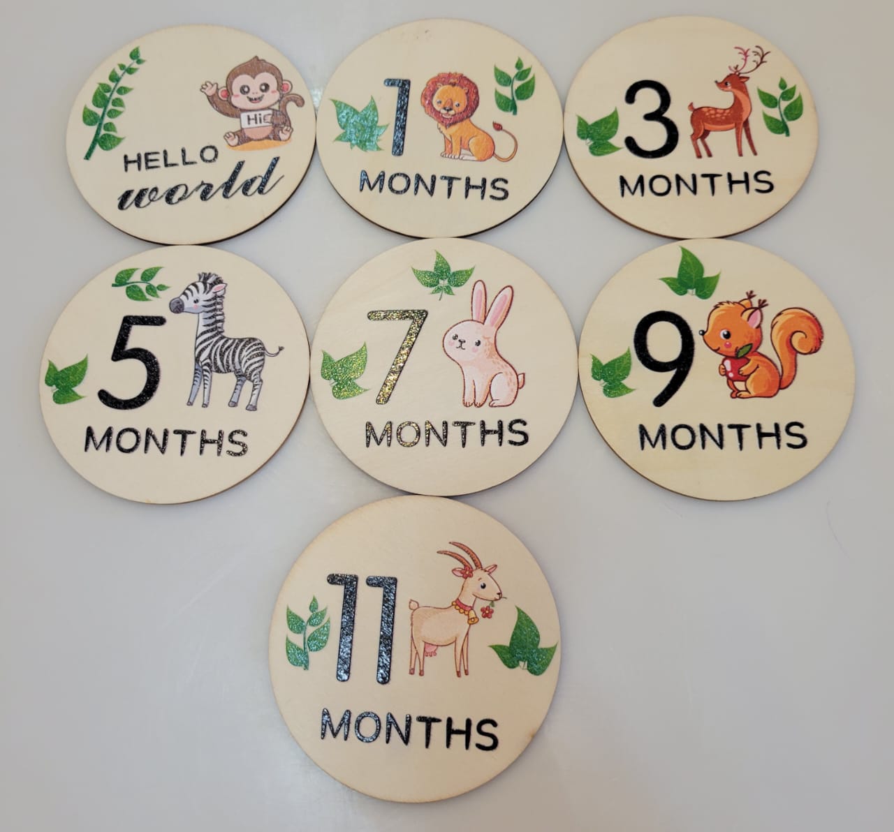 Each wooden disc features a cute animal design ๐ฆ๐ฐ๐ฆ and marks a special milestone โ perfect for photos and memories that last a lifetime! ๐